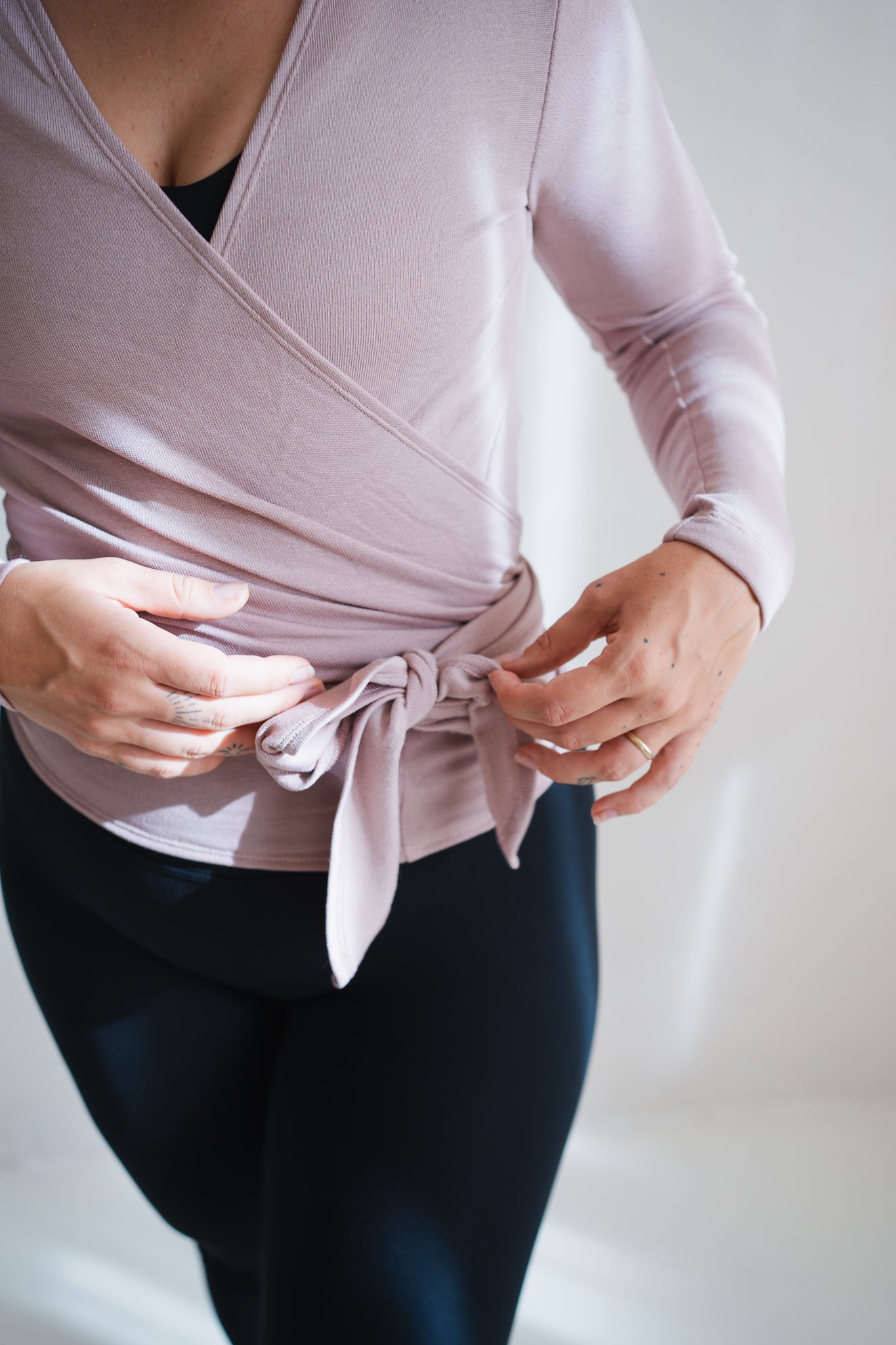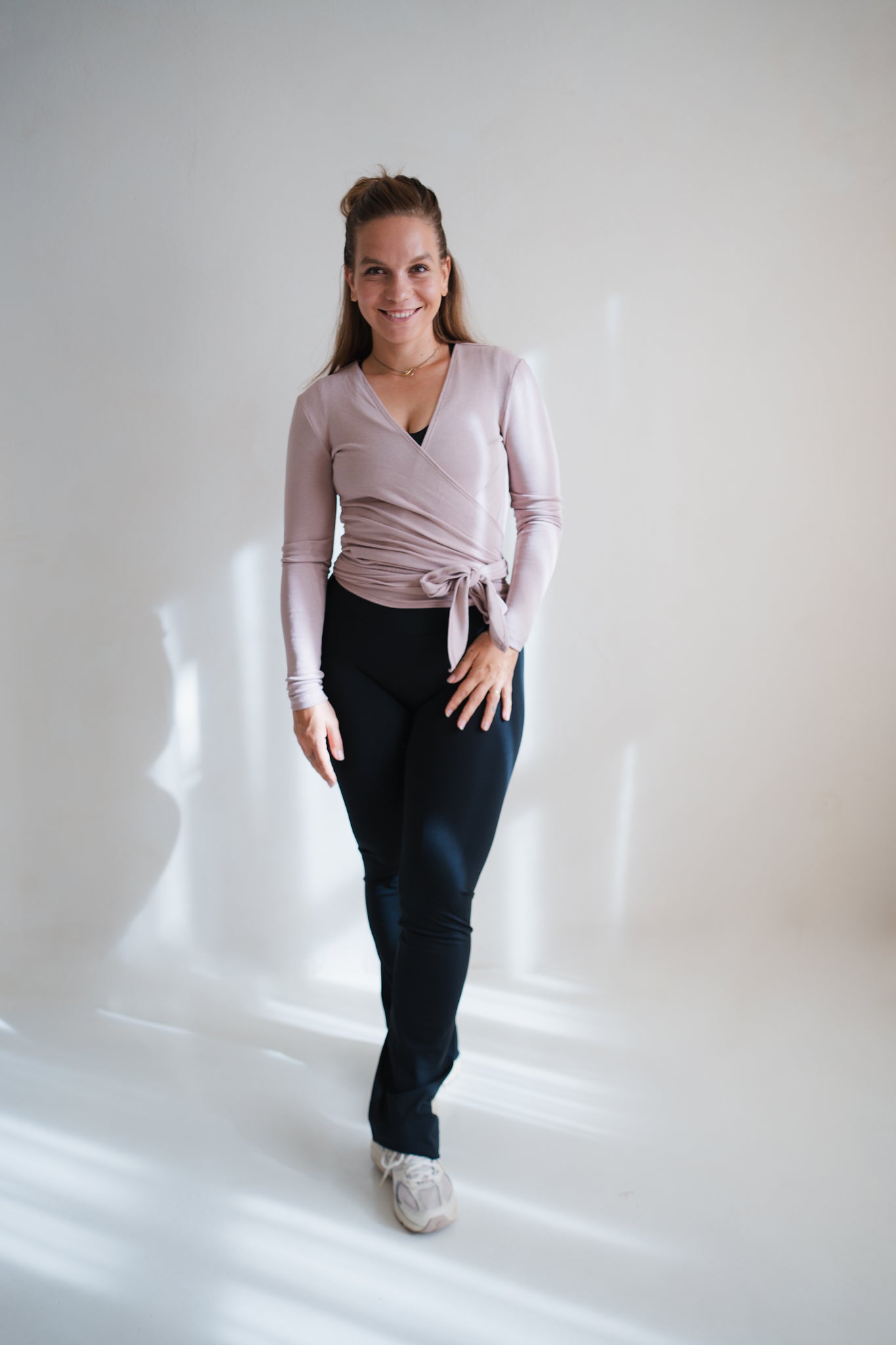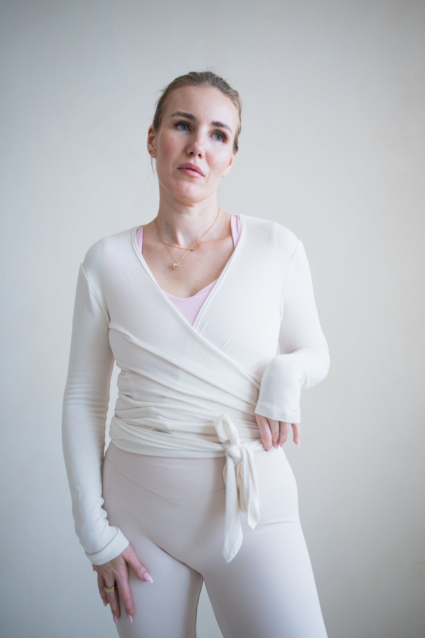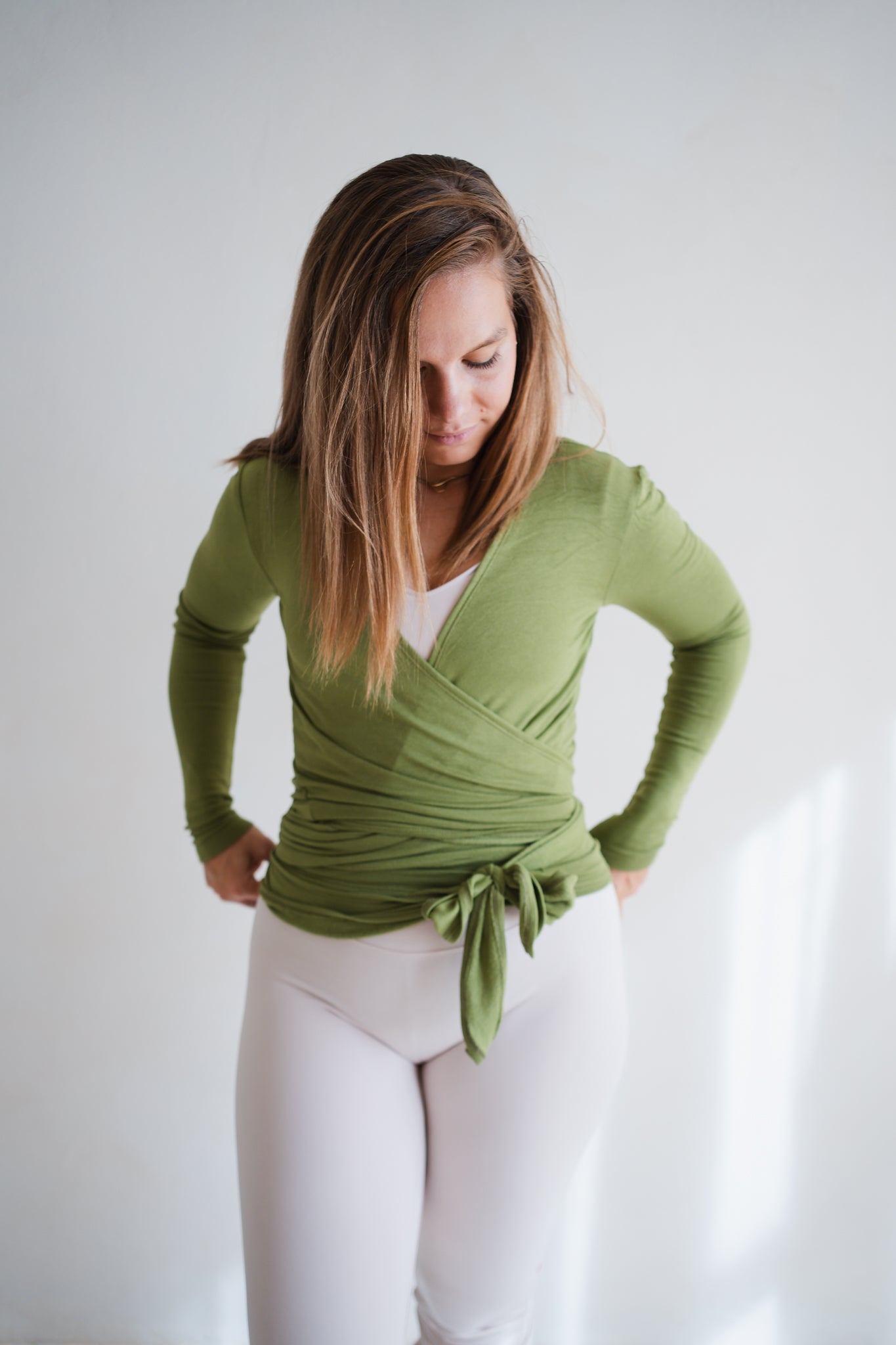 Bamboo Wrap AW jsme ušily ze stejného hebkého materiálu jako jeho letní sestřičku, jen jsme mu dali vyšší gramáž a počesaný povrch, aby tě zahřál v chladnějších dnech. Zůstává jeho ženský střih s překříženým zavinováním, které lichotí postavě a dovolí ti nastavit si hloubku výstřihu přesně podle sebe.