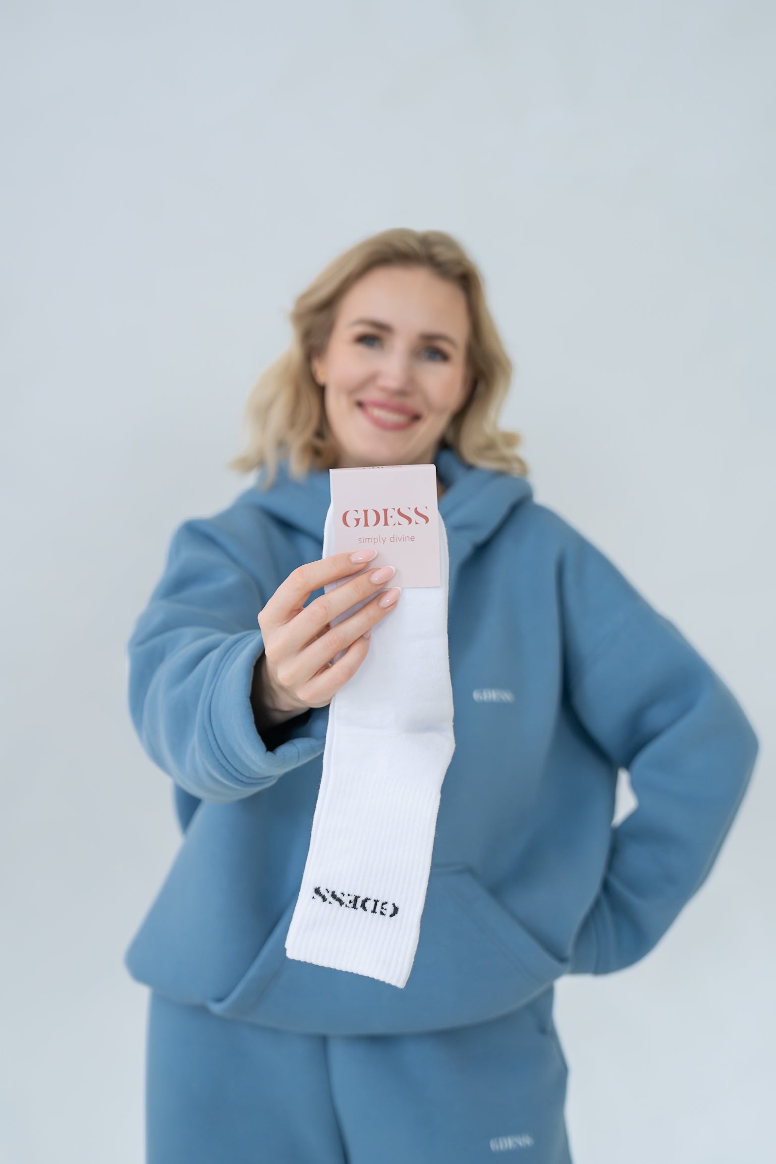 Tyto ponožky jsou perfektní volbou pro každodenní aktivity, ať už jde o relaxaci doma, cvičení, nebo dlouhé dny na nohou. Minimalistické logo GDESS dodává elegantní nádech, který podtrhuje váš styl i v těch nejmenších detailech.