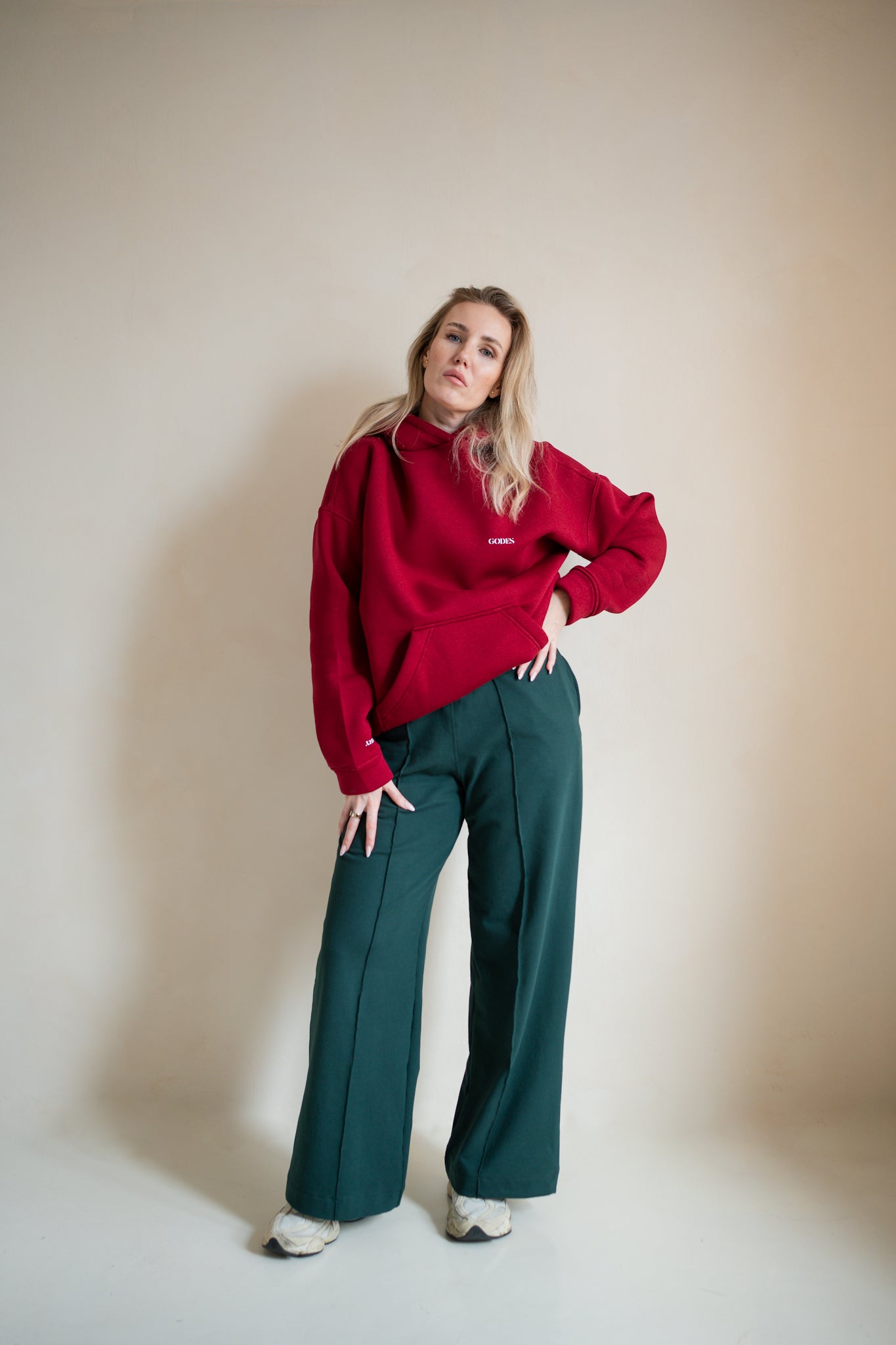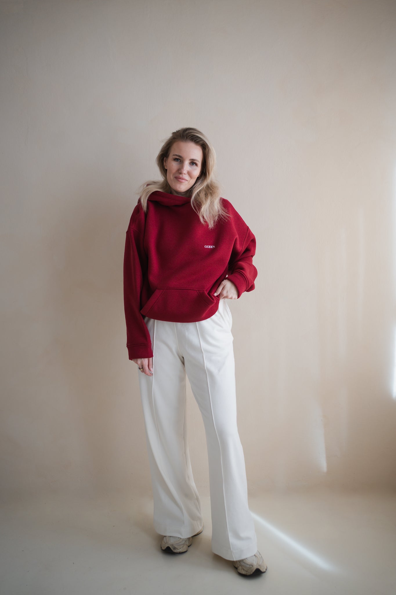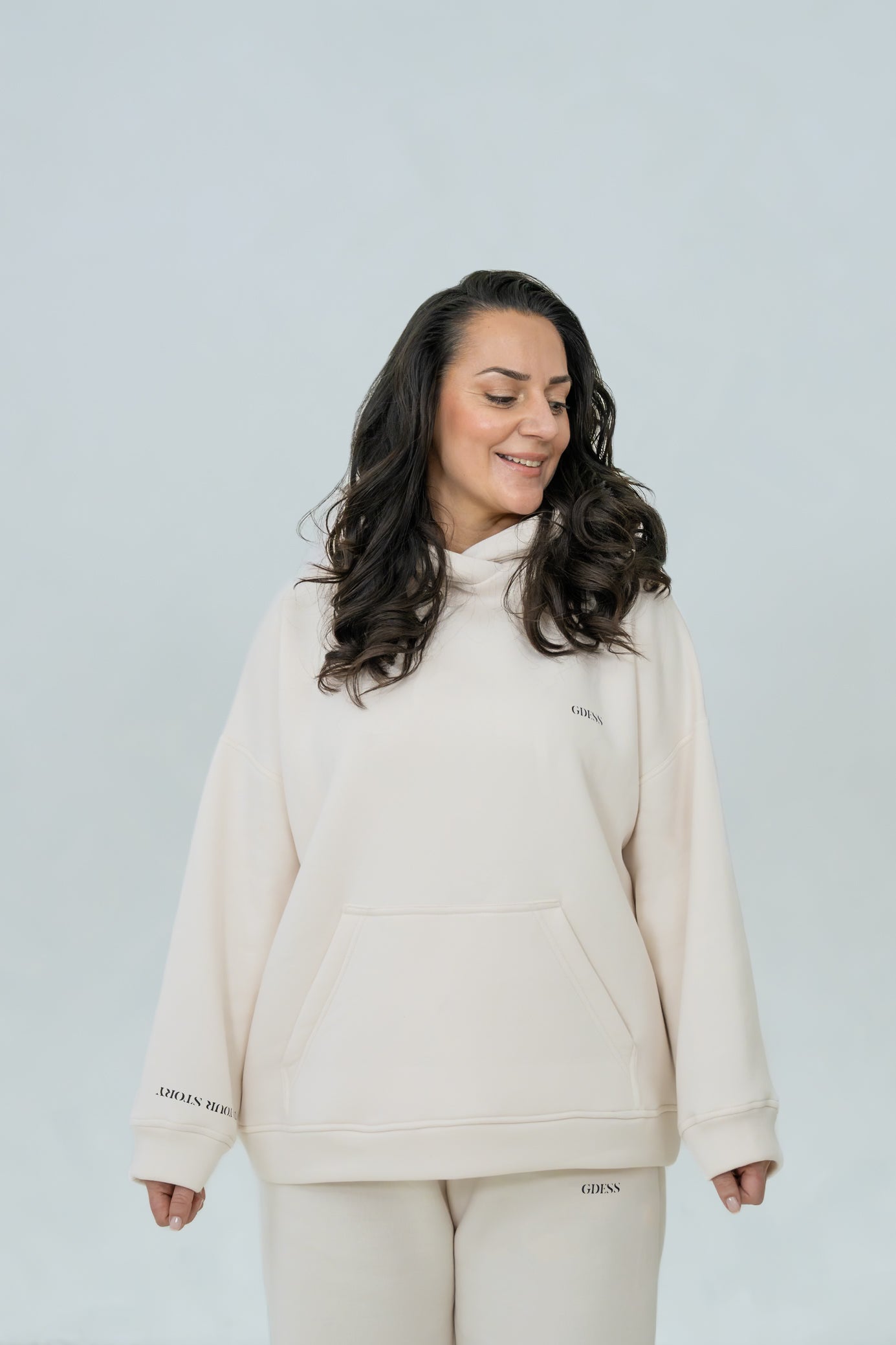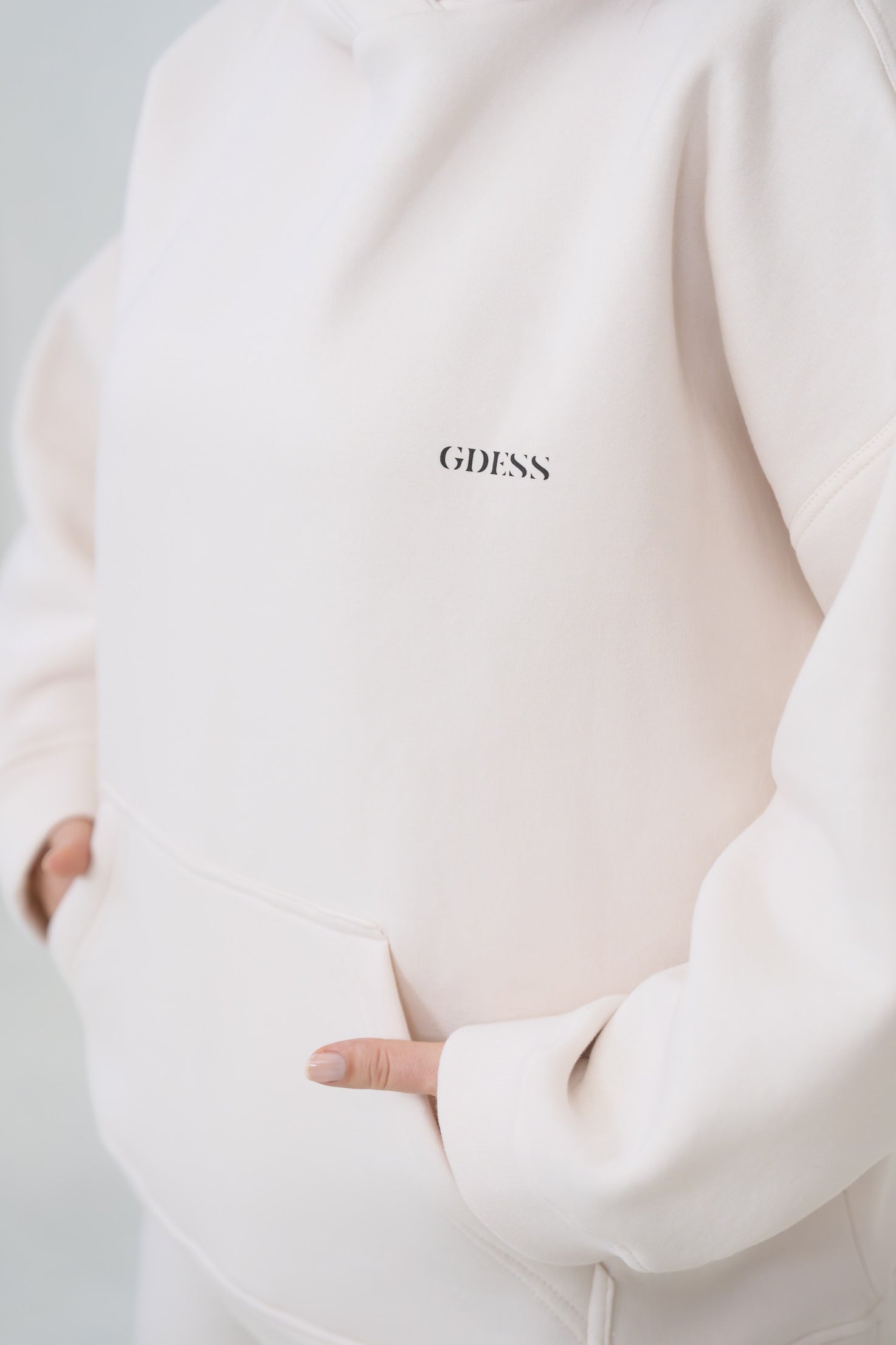 Tato elegantní oversize mikina s kapucí je definicí pohodlí a stylu v jednom. Má volnější střih, snížená ramena a velkou klokanku. Na hrudi je jemné logo GDESSky, aby jste nezapomněly, kdo jste.