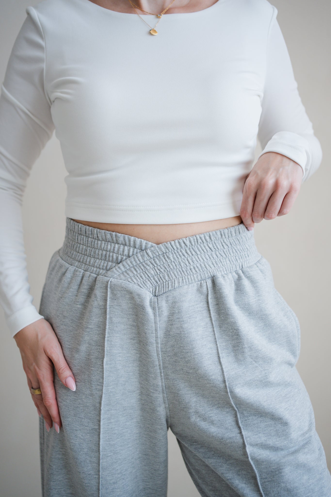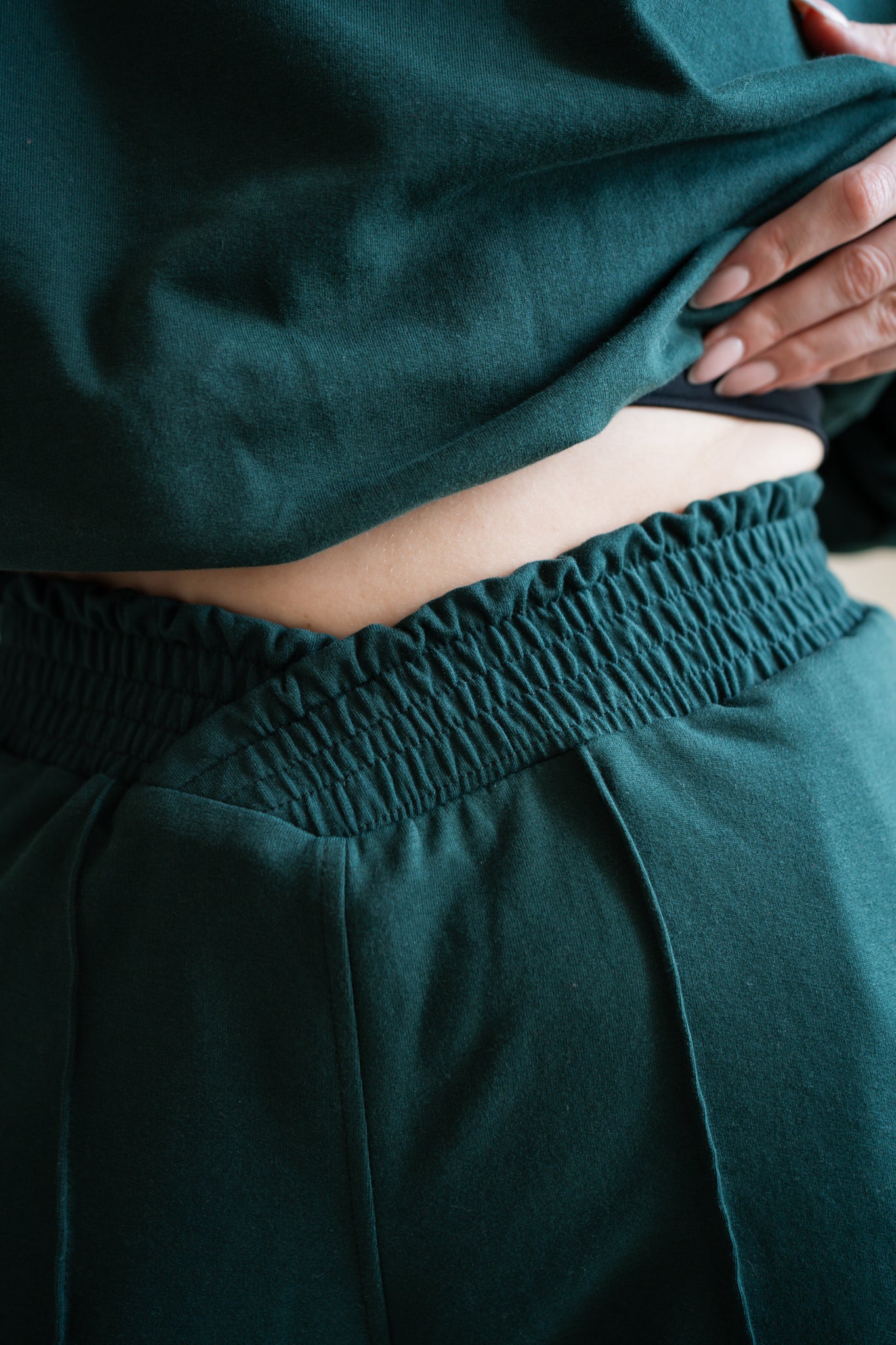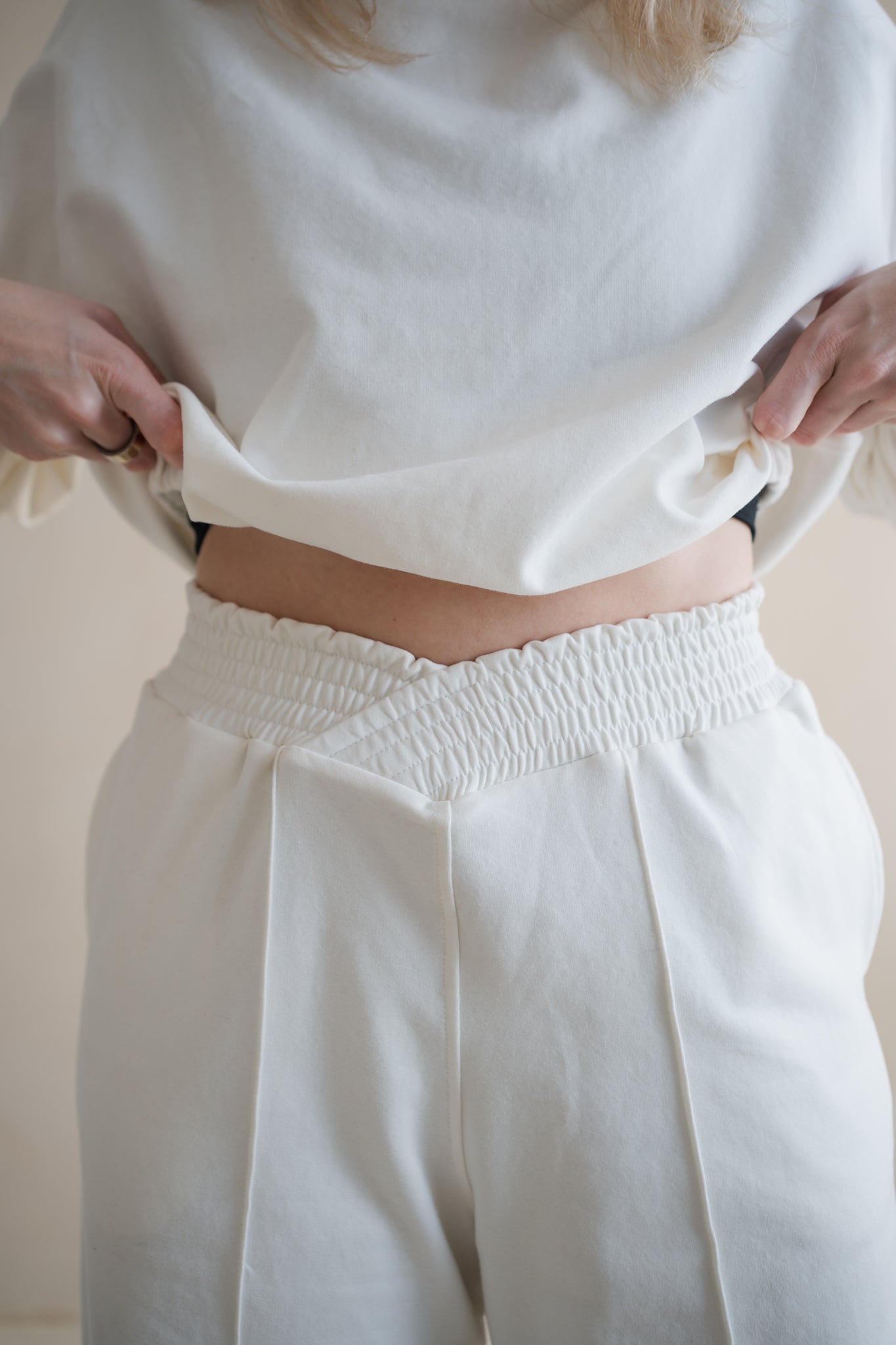Největší gamechanger? Pas. Nová 5cm guma střižená do kříže vytváří nádhernou siluetu, opticky zužuje pas a přitom pohodlně padá přes boky a zadeček. Jsou navrženy tak, aby lichotily postavě a přitom zůstaly tvým nejpohodlnějším kouskem v šatníku. Dokonalý match k She Evolves Crew.