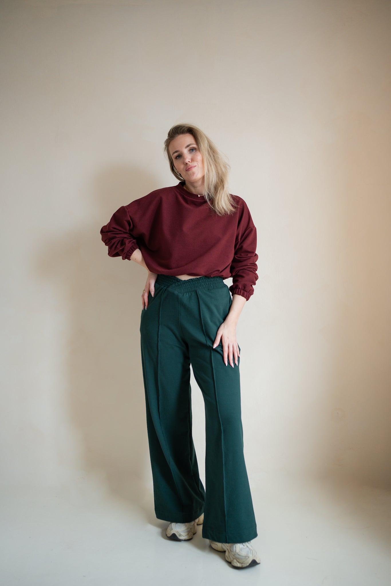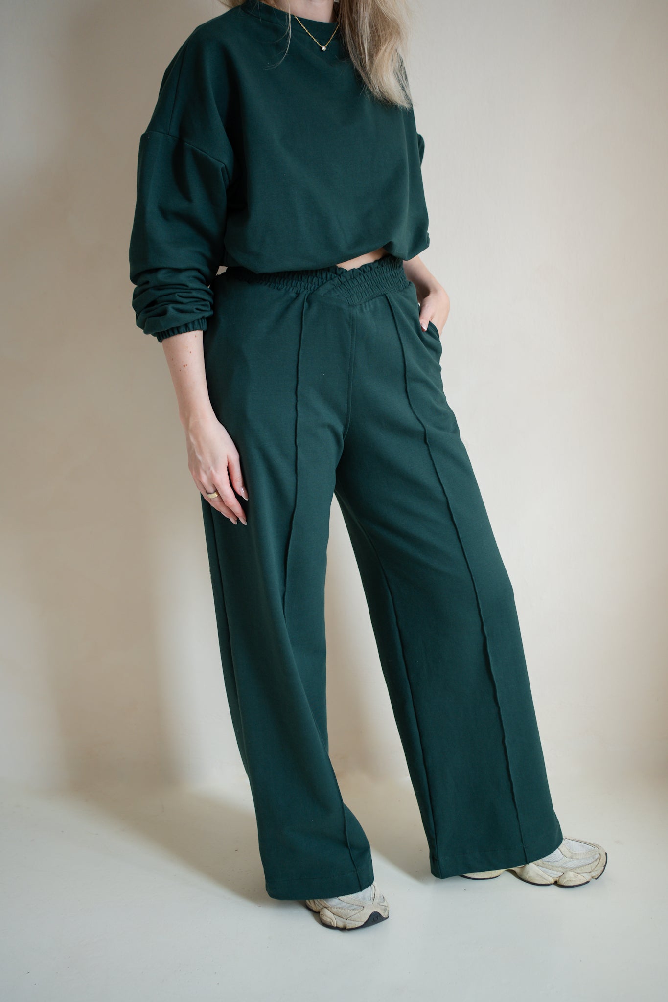 She Evolves Pants vycházejí z našeho ikonického střihu True Muse, ale dostaly upgrade: mají široký, volný střih s našitým pukem, který drží tvar a dodává jim moderní, čistou linii.