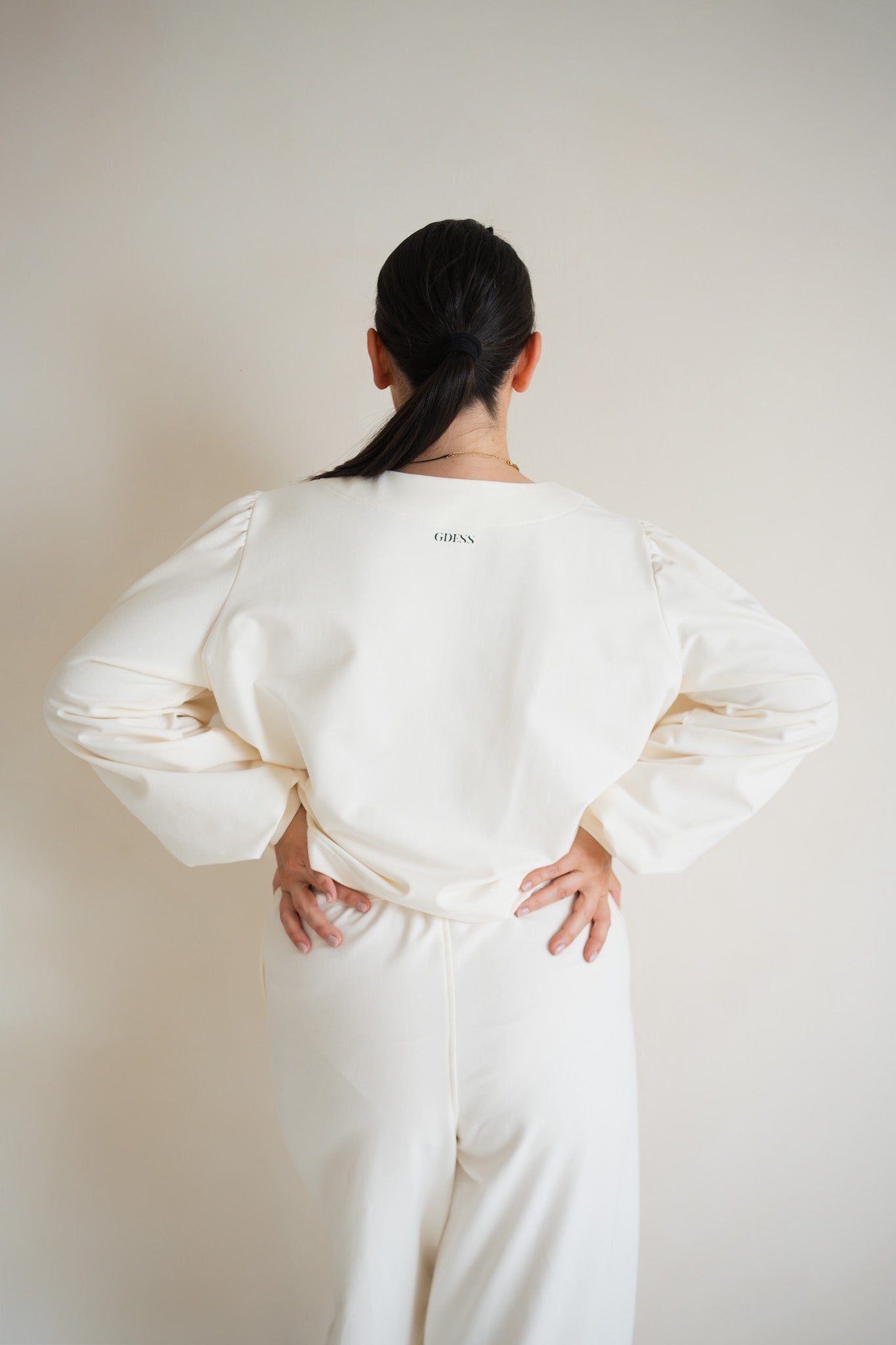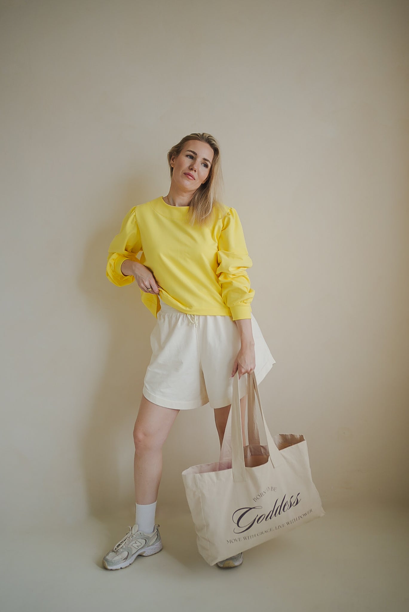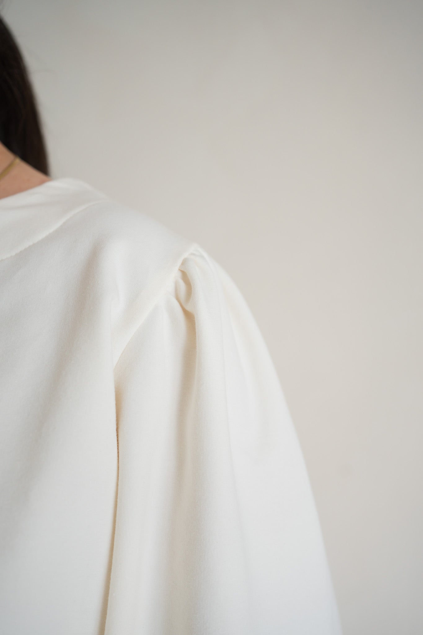 Díky jemně balonovým rukávům s nařaseným zakončením působí romanticky a rafinovaně zároveň. Mikina má ženský, lehce volnější střih, který lichotí postavě a přesto zůstává pohodlný. Elegantní alternativa klasické mikiny, která se hodí stejně tak ke kalhotám jako přes šaty.