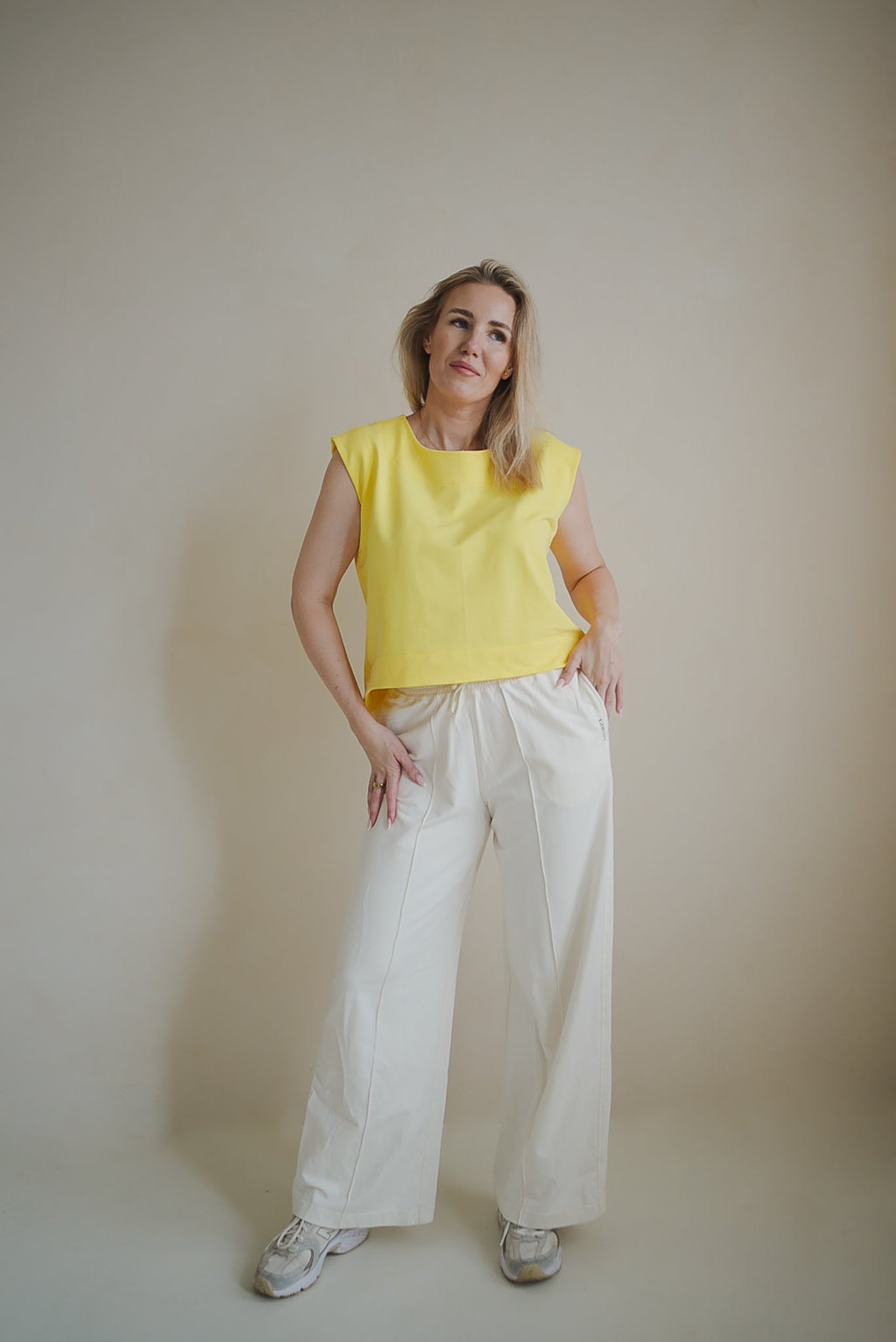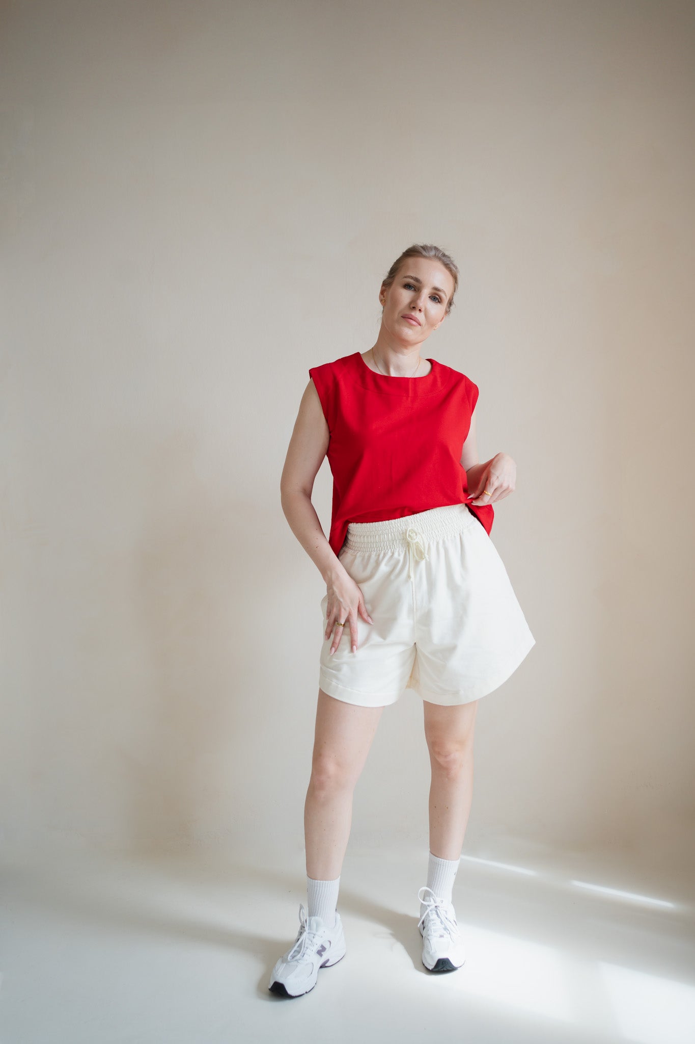 Přední část vesty je jemně zkrácená, zatímco zadní díl elegantně prodloužený – tenhle detail dodává siluetě lehkost a moderní nádech. Díky své univerzálnosti ji můžeš vrstvit přes top, mikinu, nebo nosit samostatně jako výrazný stylingový prvek.
